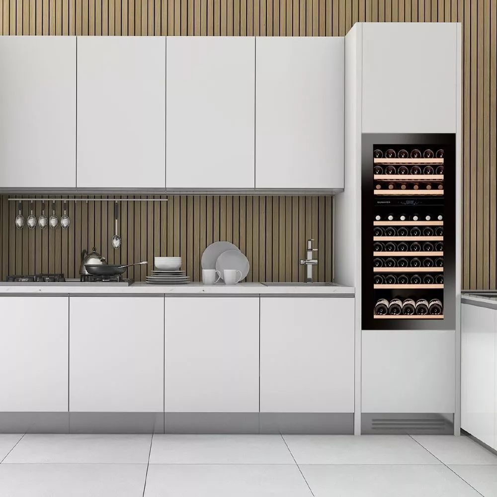 Компрессорный винный шкаф Dunavox DAVG-72.185DB.TO обладает большой вместимостью и способен разместить в себе до 72 бутылок. Располагаются они на выдвижных полках из массива бука. Внутреннее пространство шкафа разделено на 2 температурные зоны с возможностью настраивать каждую из них в диапазоне от +5 °C до +20 °C. Электронный термостат помогает стабильно поддерживать заданную Вами температуру. Холодильник поддерживает влажность в диапазоне 60-80%, как в настоящем винном погребе. Для дополнительного повышения влажности предусмотрен контейнер для дистиллированной воды.