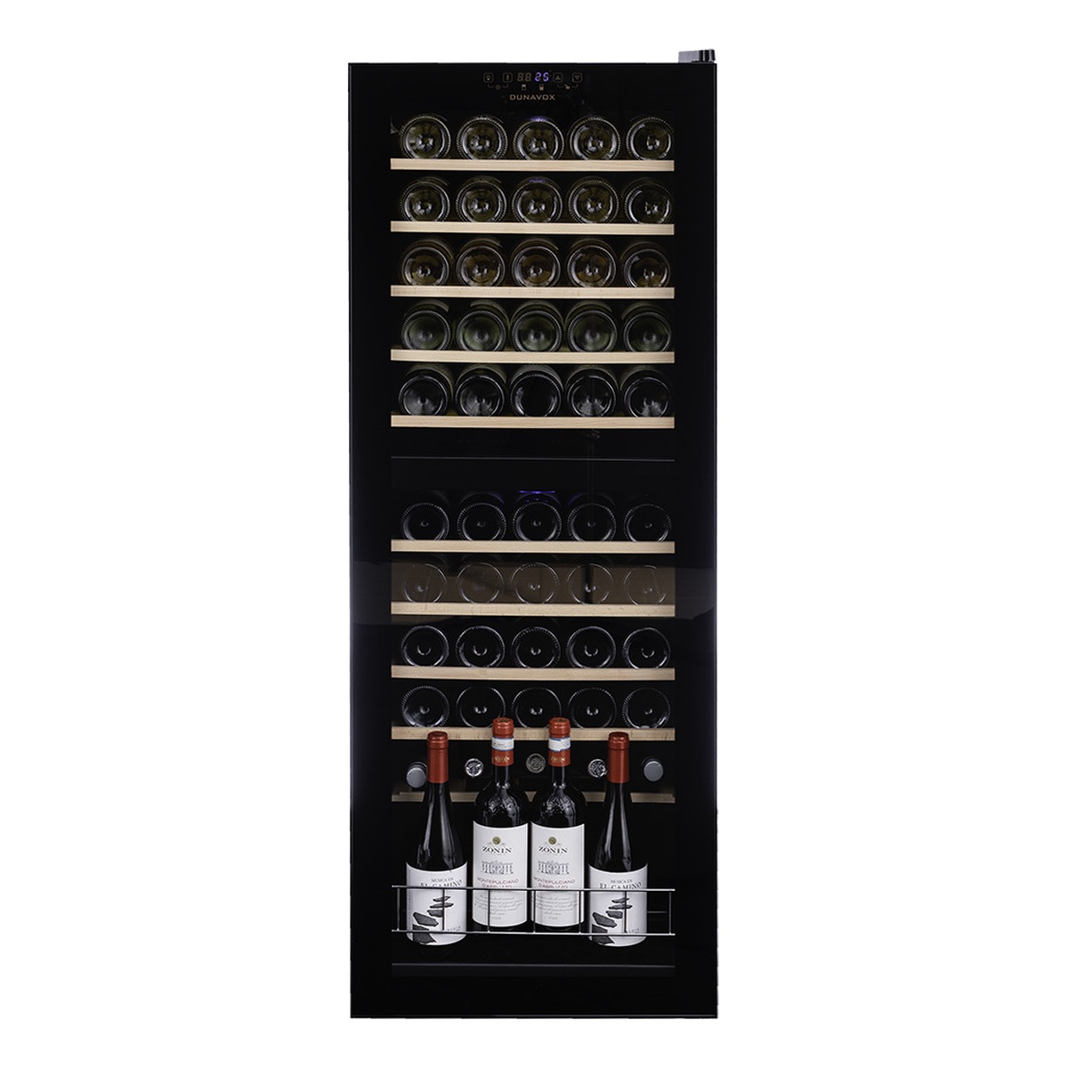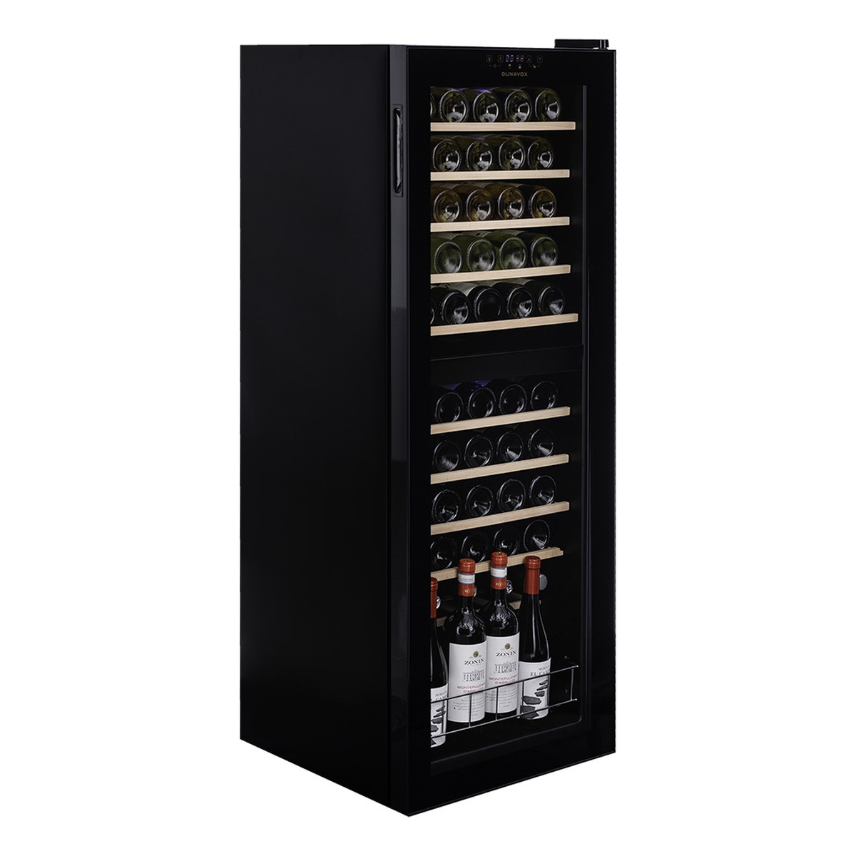 Компрессорный винный шкаф Dunavox DXFH-54.150 обладает большой вместимостью и способен разместить в себе до 54 бутылок. Располагаются они на выдвижных полках из массива бука. Внутреннее пространство шкафа имеет две температурные зоны с возможностью настраивать каждую из них в диапазоне от +5 °C до +18°C. Электронный термостат помогает стабильно поддерживать заданную Вами температуру. Холодильник поддерживает влажность в диапазоне 60-80%, как в настоящем винном погребе.