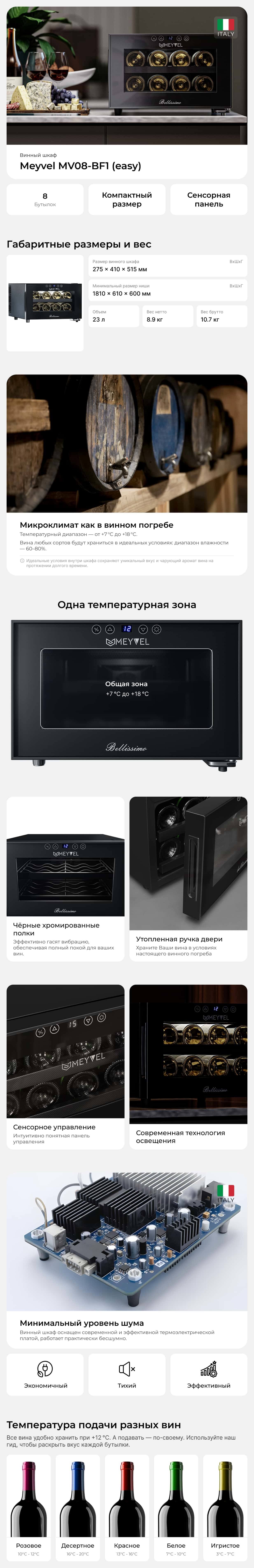 Преимущества винного шкафа MV08-BF1 (easy):