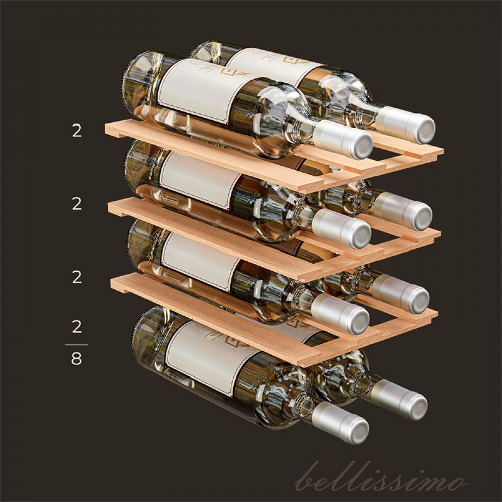Модель рассчитана всего на 8 бутылок, поэтому такой винный шкаф легко вписывается в небольшую кухню, кабинет или даже гостиную, не занимая много места, но чётко выполняя свои функции. Он прекрасно подойдёт тем, кто только начинает собирать коллекцию, или предпочитает держать под рукой небольшой запас любимых вин.