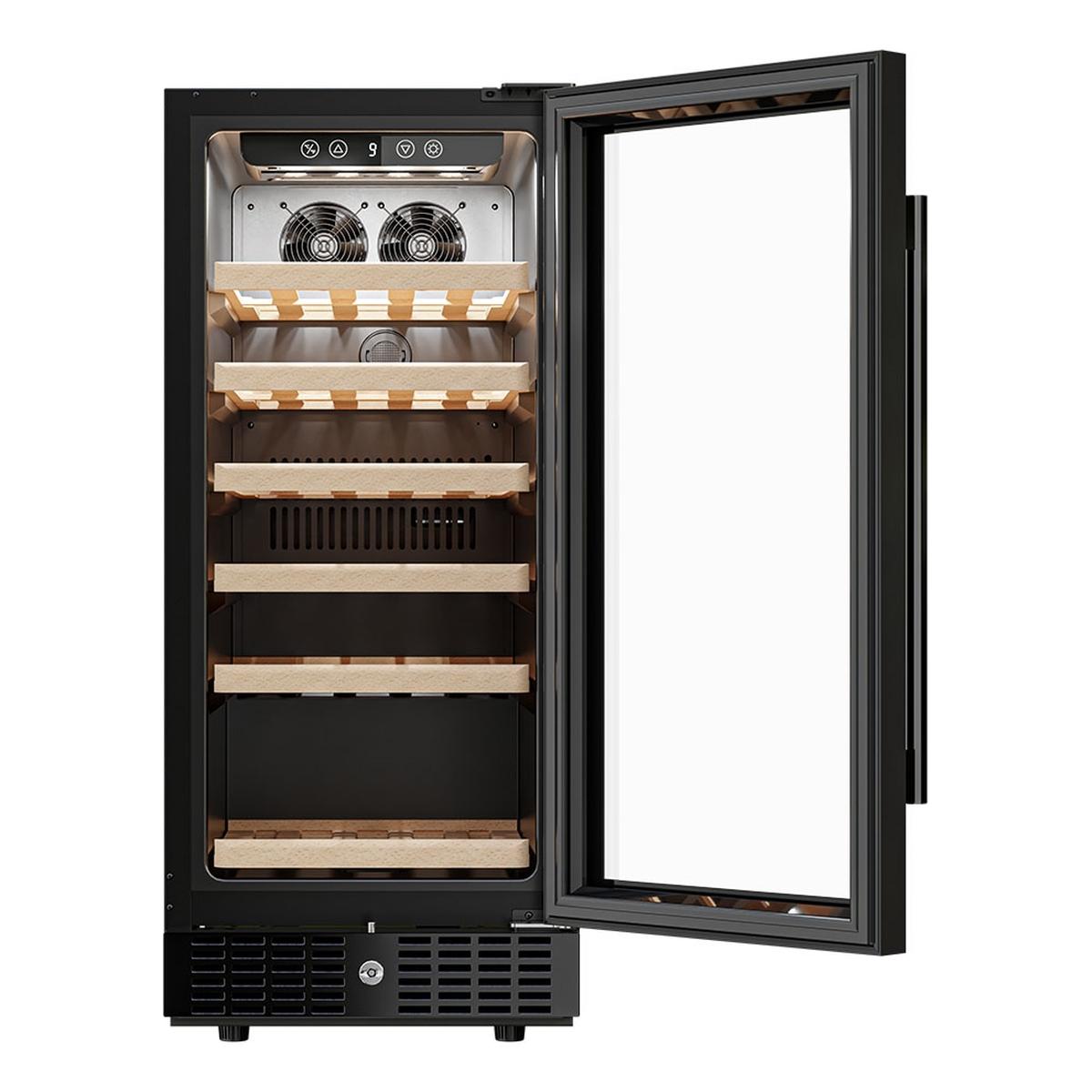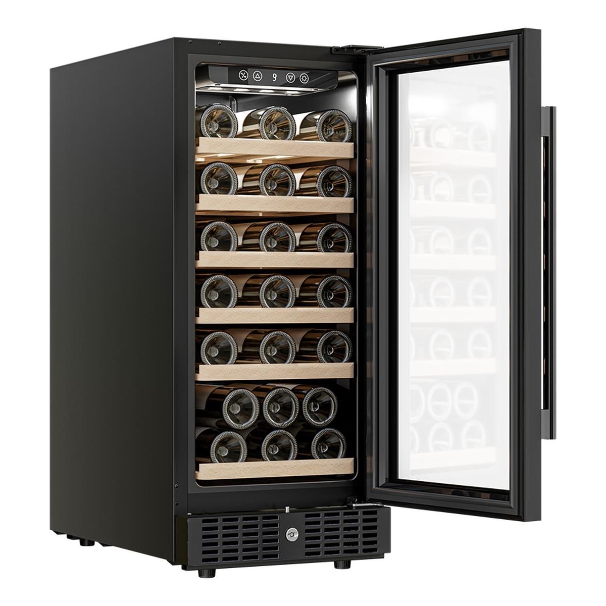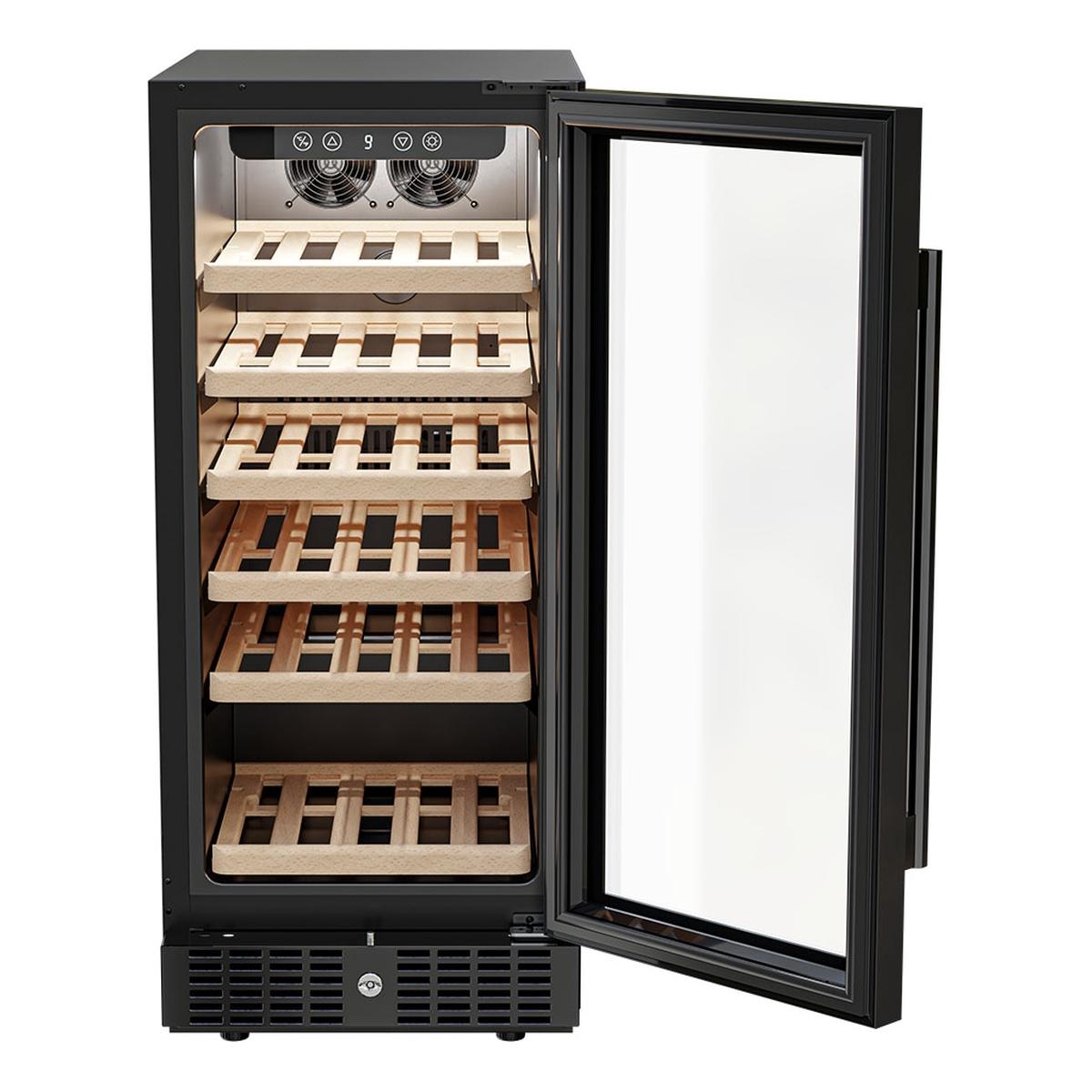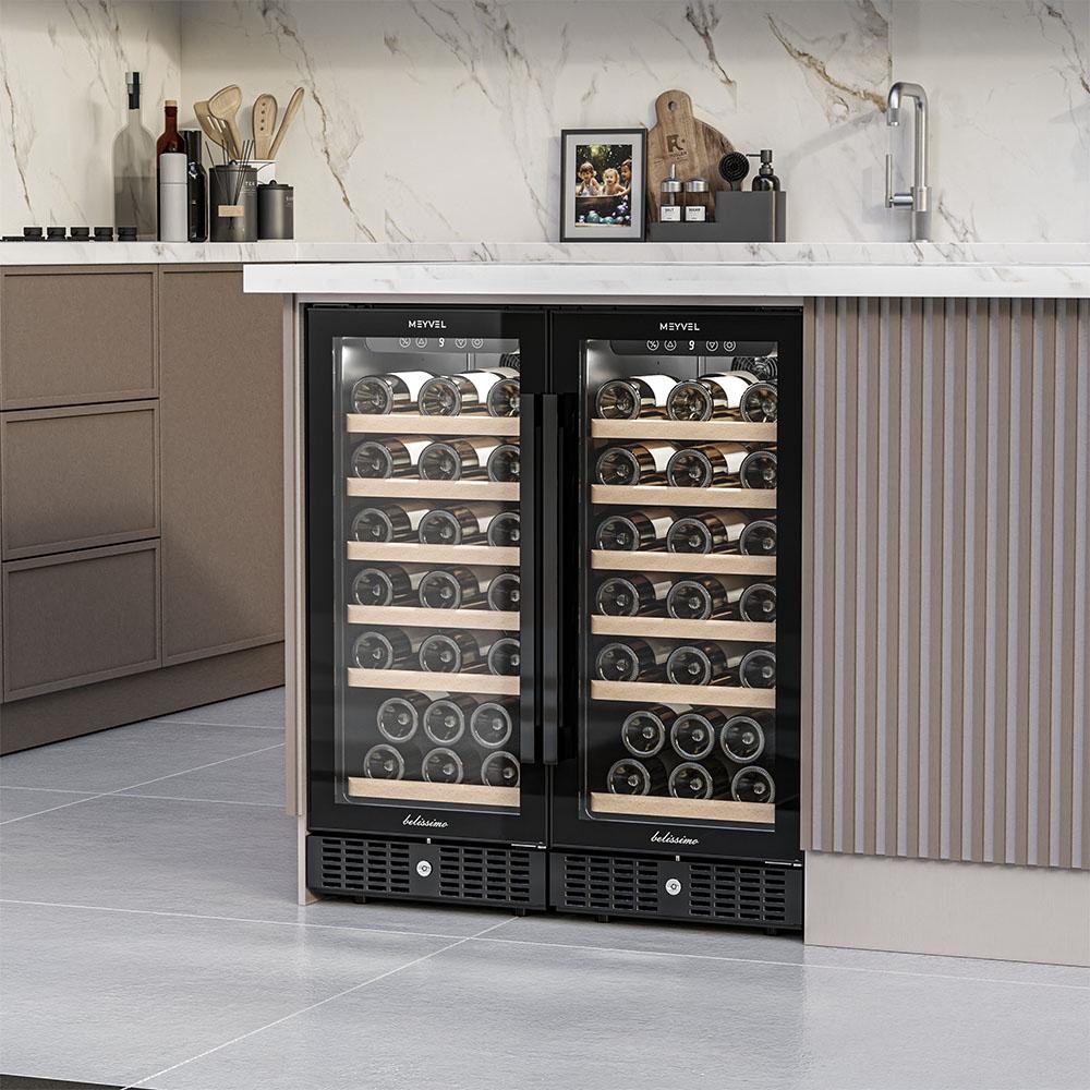 Meyvel MV31BIG-KBT1 вмещает до 31 бутылку типа «Бордо» — это может быть небольшая винотека, тщательно подобранная для особых поводов, или внушительная коллеция. Бутылки располагаются на полках из бука горизонтально, чтобы предотвратить пересыхание пробки. Это не просто эстетика, а практический подход к защите аромата и вкуса напитка.